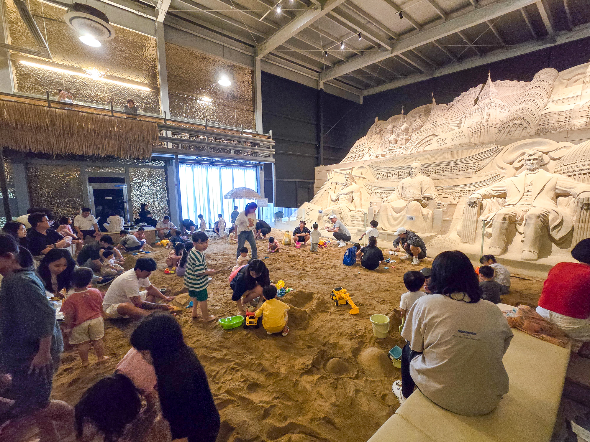 샌드뮤지엄은 C동에 위치하고 있었습니다. 최지훈 작가님이 만든 작품을 감상할 수 있었으며, 작품이 생각보다 거대해서 매우 인상적이었습니다. 또한, 그 앞에는 아이들이 모래 놀이를 할 수 있는 공간이 마련되어 있었습니다. 온 동네 아이들이 이 곳에 모인 것 같은 생각이 들었답니다.